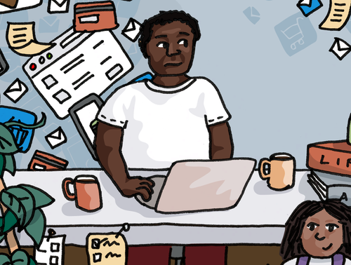 I started sketching this illustration after listening to episode 31 of Doing It For The Kids podcast, as they discussed how work admin, life admin and parent admin lists grow longer with every child, but there are ways to see you through it. Can you relate? DIFTK is one of my favourite podcasts to listen to. It’s hosted by Frankie Tortora and Steve Folland, with loads of advice for freelancing parents, and each episode is only 20 mins!